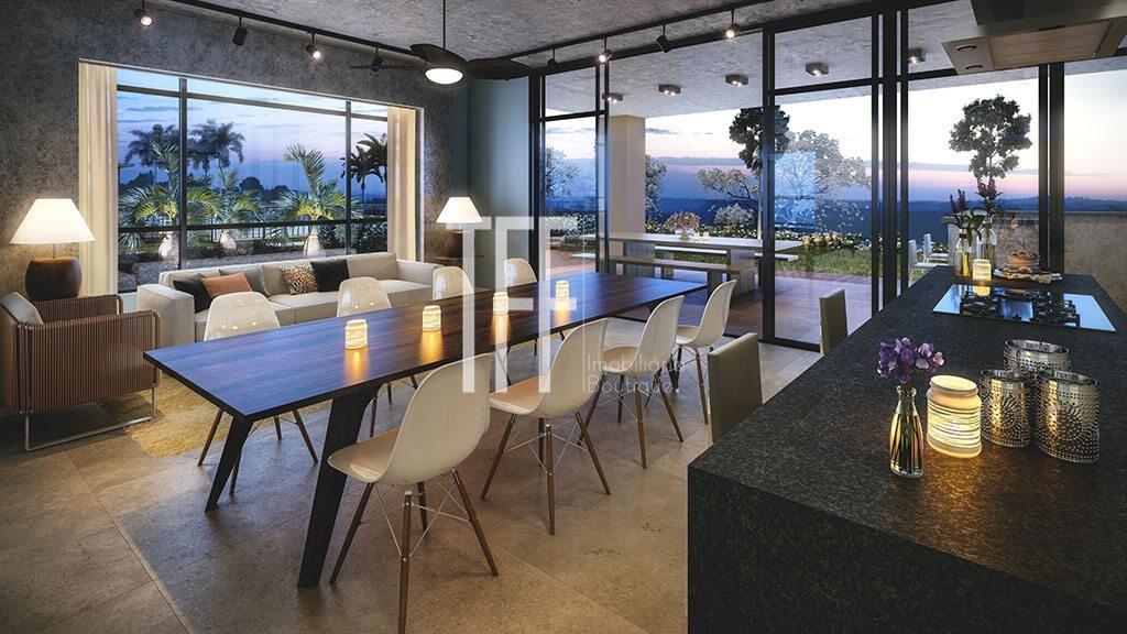 • Cozinha integrada com ambiente externo e interno